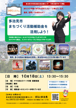 ※申し込みはこちら⇒「NPOカフェ 多治見市まちづくり活動補助金を活用しよう!」