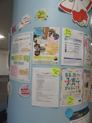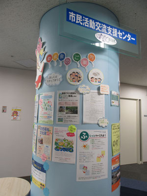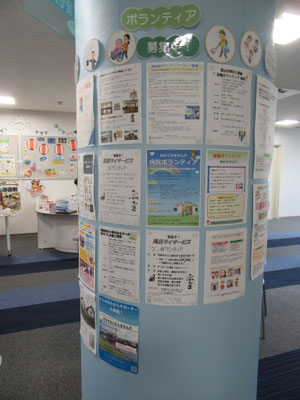 当センター中心部の円柱には助成金・ボランティアの情報も掲示しています。